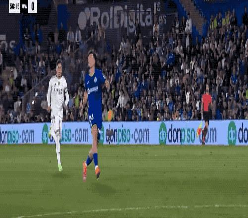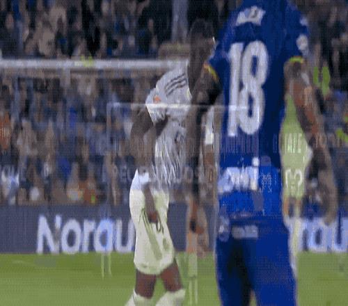 第22分钟,短短的1秒之内,赫塔费两人倒在了皇马的禁区内,赫塔费球员索要点球,裁判果断示意,没有任何犯规。