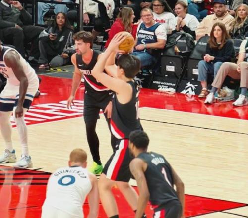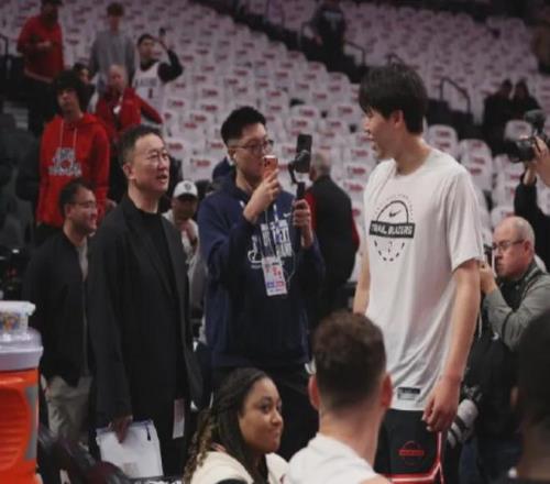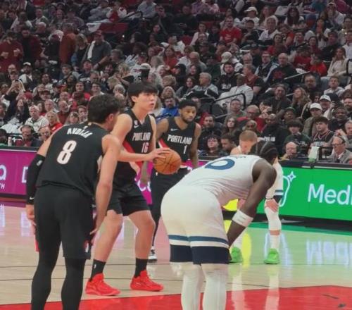 开拓者主场对阵森林狼,很多人到现场观战,比如杨瀚森的恩师刘维伟就从青岛到了波特兰,看弟子的NBA常规赛首秀。