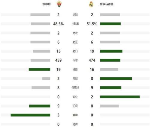 阿隆索也很快做出换人调整,派上了维尼修斯和巴尔韦德,第72分钟皇马前场抢断,可惜维尼修斯大禁区右侧的打门被封堵,错失扳平比分的绝佳机会,不过6分钟之后,赫伊森利用角球机会,门前抢射帮助皇马将比分追至1平,第84分钟出自皇马青训的阿尔瓦罗反击带球推进到前场后,在大禁区前沿左脚抽射建功,帮助埃尔切2-1再次取得领先。